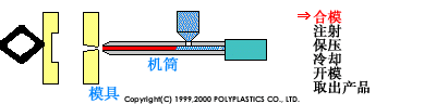 注塑成型:是將已加熱融化的材料噴射注入到模具內,經由冷卻與固化后得到成形品的方法。