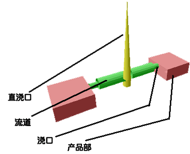 成形品是由流入融化樹脂的澆口、導入模槽的流道與產品部份所構成。由于一次的成形作業(yè)只能作出一個產品,因此效率不高。若能利用流道連結數個模槽,就可同時成形數個產品。此時,當各模槽的流道長度不同時,就無法同時填充樹脂,而且大部分的模槽尺寸、外觀、物性皆不同,因此通常都會將流道設計成相同長度。
